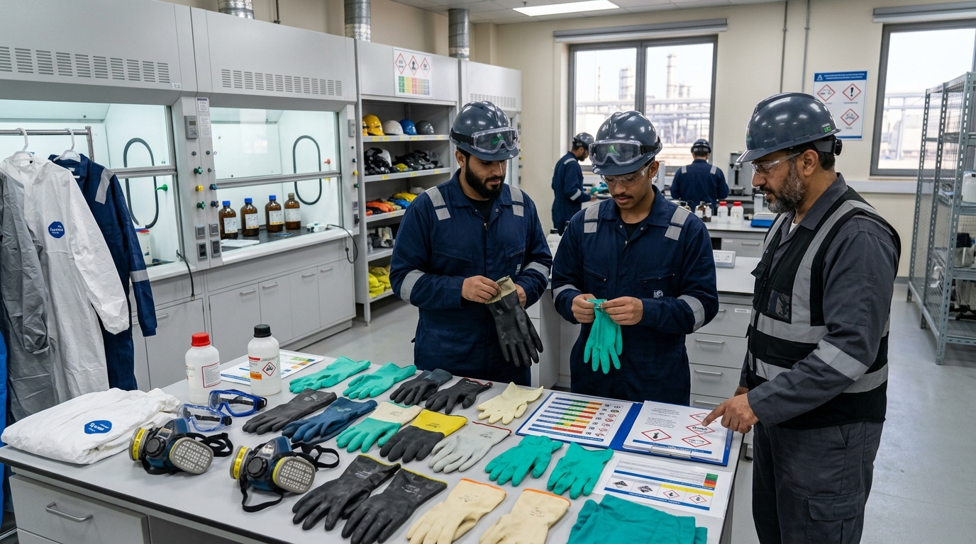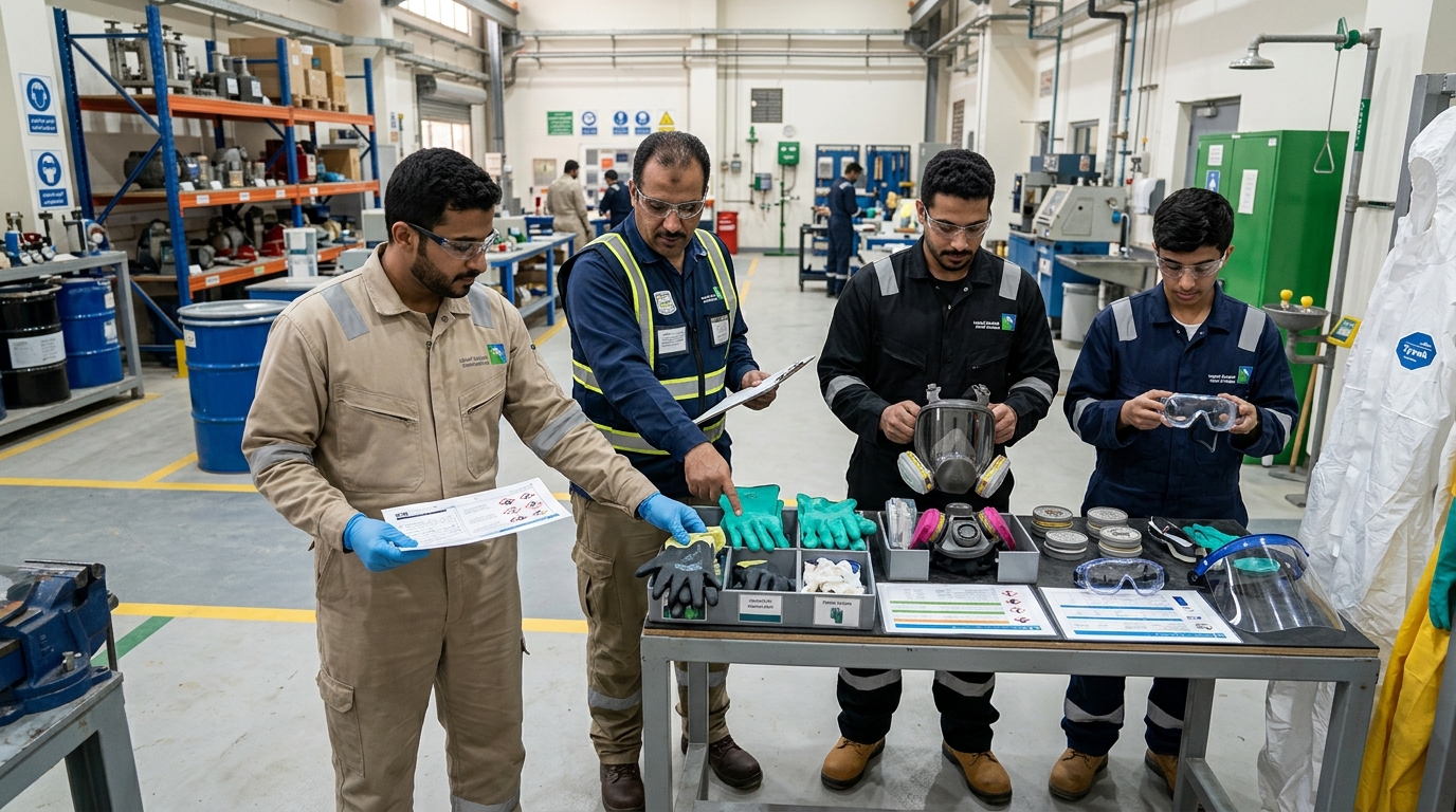 • اختيار معدات الوقاية الشخصية المناسبة وفق تقييم المخاطر